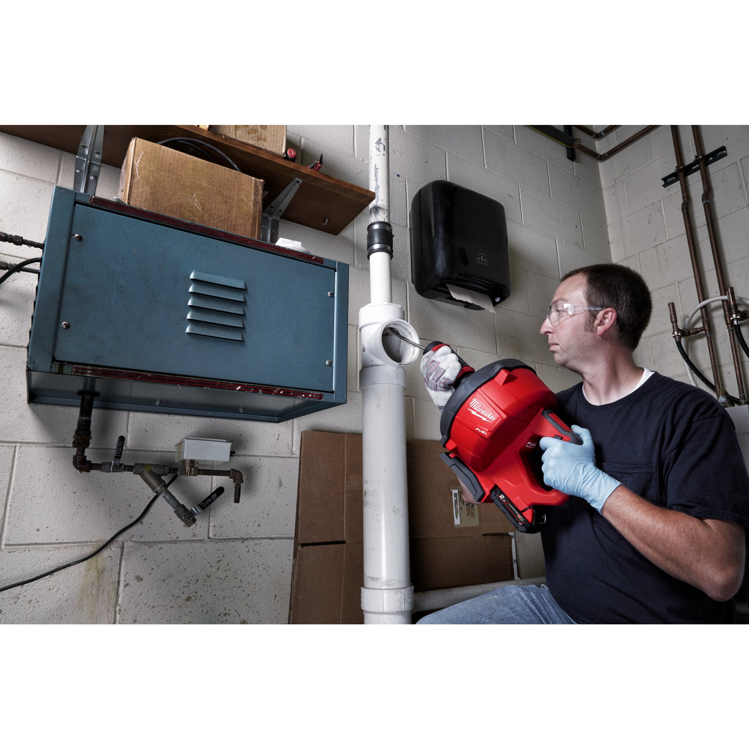 • Svetovo prvý ručný čistič potrubia s akumulátorom 18V a automatickým posuvom, ktorý možno použiť so špirálami 6 mm, 8 mm a 10 mm od MILWAUKEE® a iných značiek, v potrubí od 32 mm do 75 mm, do dĺžky 15 m, čím sa eliminujú všetky riziká úrazu elektrickým prúdom, s ktorými sa užívatelia dnes stretávajú