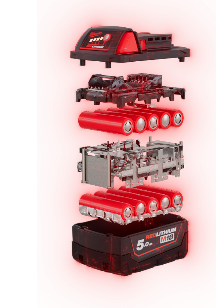 Naša exkluzívna integrácia chémie, konštrukcie obalu a obvodov sa spája pre vynikajúci výkon v najnáročnejších prostrediach. Akumulátory REDLITHIUM™ umožňujú viac práce v priebehu dňa a počas celej životnosti akumulátora.
